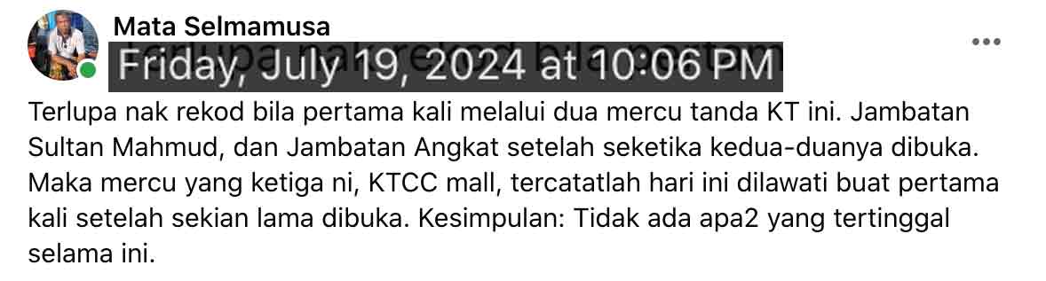 Aug 19 Mon 14 Safar 1446H, in Jjabat Tanah Marang again accompany-ing NA. The mission was not well accomplished, the khaning said the online payment sisteng was down since yesterday. OTW home met Dr Abdullah, in RAHSIA. As always when passing Batu Buruk at right time, GHOJOK Nurul Iman tepi kubur and ROTI ABDULLAH depan KTS were not to be missed.