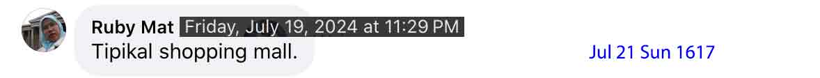 Lingering in W-Tengah while NA was in her office to proceed which ever were possible. Noted no-landing in PKB, and very few in PTJ despite a very calm sea. Jul 22 Mon 16 Muharam 1446H, visited Mydin GB. On the way back singgah one eatery, known as Simpang Tiga in W-Baru which lead the J-Airport. This place was observed to have endured for a long time despite its inconveniences resulted from rapid development. We had lunch. To the end we still could not figure out why it was so un-bended to the change. The iron smith turned up. Li by short, the son of my father's aquaintance in Alor Terebor, whose daughter was married to a son of my cousin in the 80-s, whose akad I attended in Pasir Tinggi, because the Imam was known to encourage the wali himself to akad his daughter. Noted KAMAL was warded in HSNZ from a snap while in an eatery this morning. We visited him at night in Tok Jembal, Jul 23 Tue 17 Muharam 1446H. Apparently it was not a serious snap, it was a jovial visit together with Mohtar-Zu.