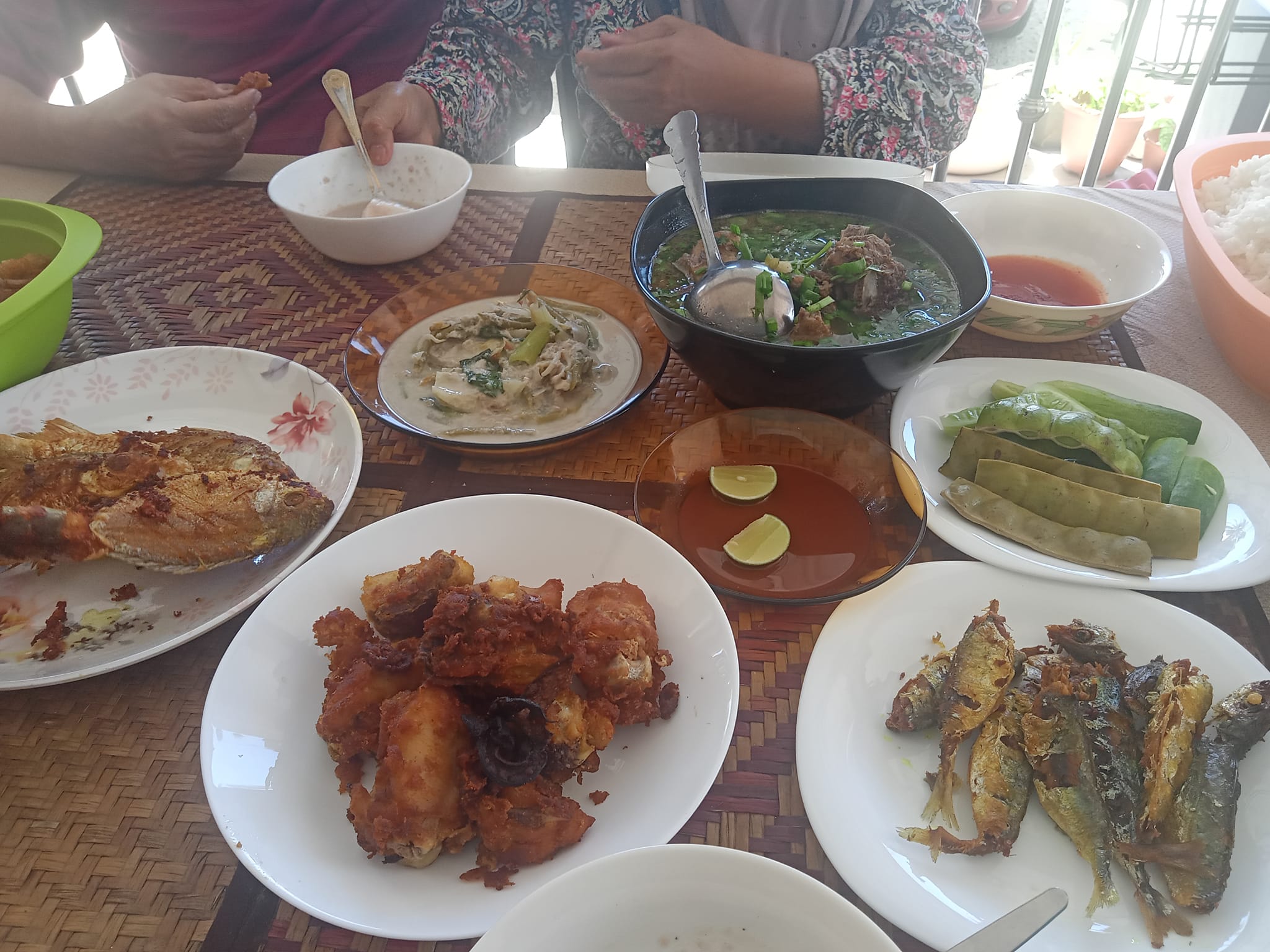 HOME-TJ needed a lot of attention. Jul 17 Wed 11 Muharam 1446H, managed to mow the eastern, and western sides. The thunderous rain halted to continue the rest. But at night the dinner was in RAHSIA on the favourite FnC.