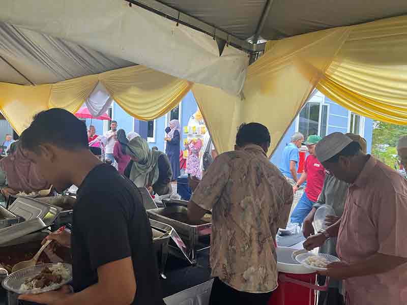 Apr 24 Thu 25 Shawal 1446H, a hatricks of sambutan raya in bandar. The first in Tetuan Nazro, NA fellow loyar, in off JSutanUmar. Followed by a walking distance away in JSutanUmar, that of Mamata, an ank sepupu, who run a tadika. Finally the 3rd in KMI JSutanMamud, NA for being the legal penal. In all three places the food was harmfully abundant.