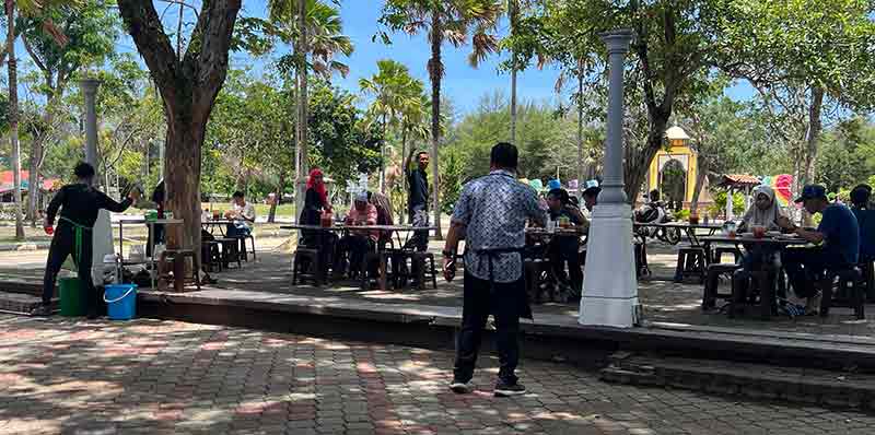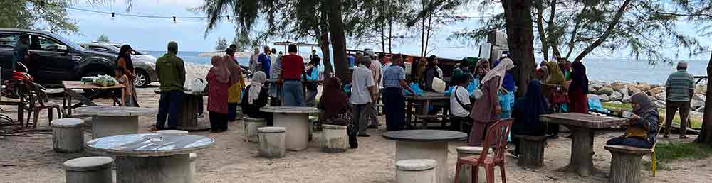 May 31 Sat 3 Z-Hijjah 1446H, joining a few puteri-alumni Padang Midin PM6470 in the cafe of Payang Scout Hotel in TAPANG BEACH, Rohaniah asked to welcome Shamsiah of Ipoh. Ca fifteen turned up, plus the acompany-ment. It was a lunch event in the midst of wedding reception events in the bigger halls.