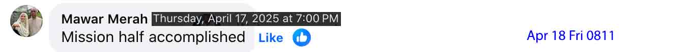 May 18 Sun 20 Z-Kaedah 1446H, a meeting was held in Sg Buah, but I noticed them that I could not attend, unless it was held after May 19 Mon. Updated was submitted, that contact had been made, but we need to see each other the more hopeful one.
