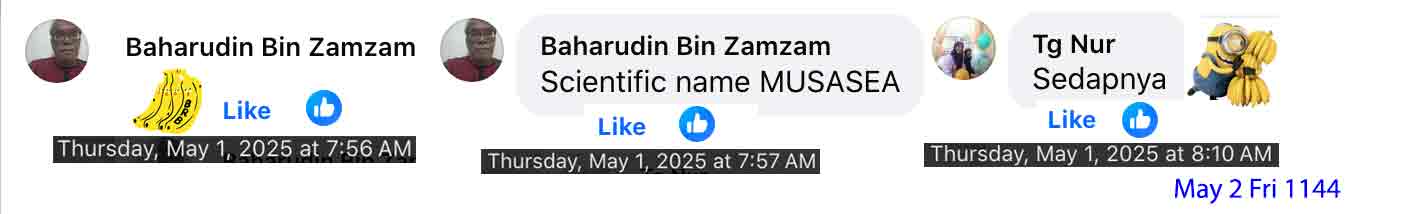 May 10 Sat 12 Z-Kaedah 1446H, DRV-JERTEH. Two tasks. One, Serindit for Sg Merab. Two, to see how the pisang in P-Rimau was coping up with the malice. Both tasks were accomplished. It was raining when we reach Bari, heavy in Narik, and subsided from Tok Dor. Serindit was acquired in Jerteh, the retailer said the price dropped by 2rm to 46rm. Noted the beginning of new project at the taxi stand, said to be bus-station. Singgah Kak-Yah for an ND treat. Then sank in the weeds of P-Rimau. MOWING. The entrance pathway and the corridor of 5-pisang. Noted the TOTAL DAMAGE done on pisang-kelat by the virus. The virus menace was more than a year already. Needed one hot day to set fire on the pisang clusters. And nothing at all on the tall tree of TOKLITOP. Conceded after a stop in the Surau. Similar no-rezeki were noted in Tok Bugis and P-Panjang. Last year about this time the ground under deriang trees were layered by the fallen petals of the flower. Homeward x-PPanjang in a fine weather, arriving just before sun set.