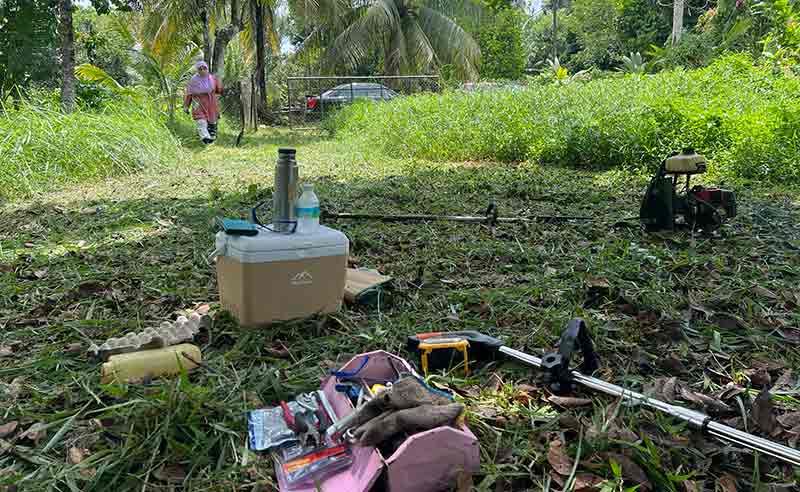 Jun 9 Mon 12 Z-Hijjah 1446H, gear box party, ex-PokJo of Raudah. Malini, Zidni, Muzani et al joining us 4-beranak. Whilst mowing, the wildly grown weed at the back. It took a few days though to cover the house perimeter, including once Jun 11 Wed a trip to the Machinery in Kajang to have the mower bearing housing replaced.