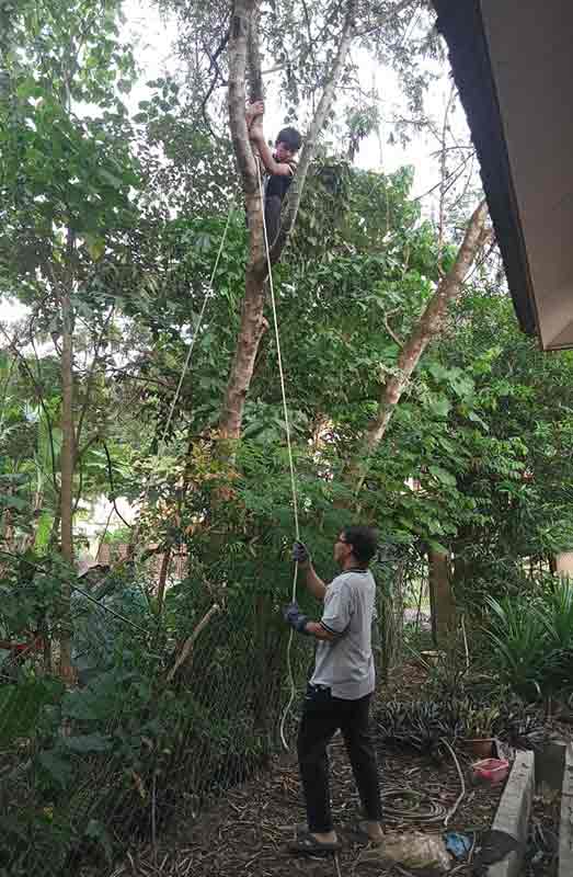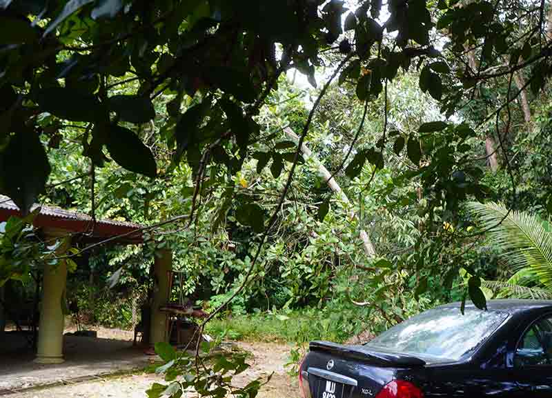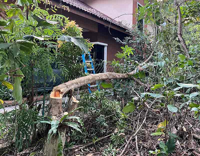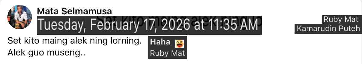 FOTOTEKSES-94 is for 2026 Feb 1-15, topping the PARALLEL, since the notorious covid has been. Bangi was warm and dry in Shakban, but every one was in bracing of Ramadan. Feb 2 Mon 14 Shakban 1447H, ALYA 3-beranak DRV-JB in the morning. In the evening was a repeat gotong-royong in rumah Malini. Ogawa-ing some of the trees from the nebor's lot which were leaning and had reach the roof of the house. It was an agony and panic when the tree was about to start falling, the chenso stuck-ed, and the rope was too short for a sufficient power to pull off along the safe direction. If the tree does not fall, the chenso would be left unsaved, and the tree pose a great potential of tumbang by the wind, and on the roof of the house. It was a very last min thought that saved the panic. The final effort was re-position the pulling direction nearer to the direction of falling. And gathered every energy, men and women available.