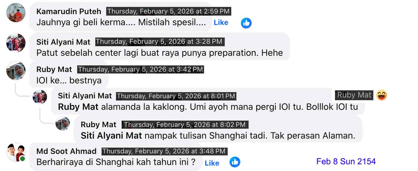 Feb 3 Tue 15 Shakban 1447H, dropped in TENERA evening bazaar for the kitchen sundries. Feb 4 Wed 16 Shakban 1447H, another CALTEXAS rendv in the late afternoon for legal matters updates. Feb 5 Thu 17 Shakban 1447H, visiting ALAMANDA for an AEON. Noted the mall was KUDA-CNY-decorated like more than one in ALAMANGHAI. And ended with a mihun kari in RASA.