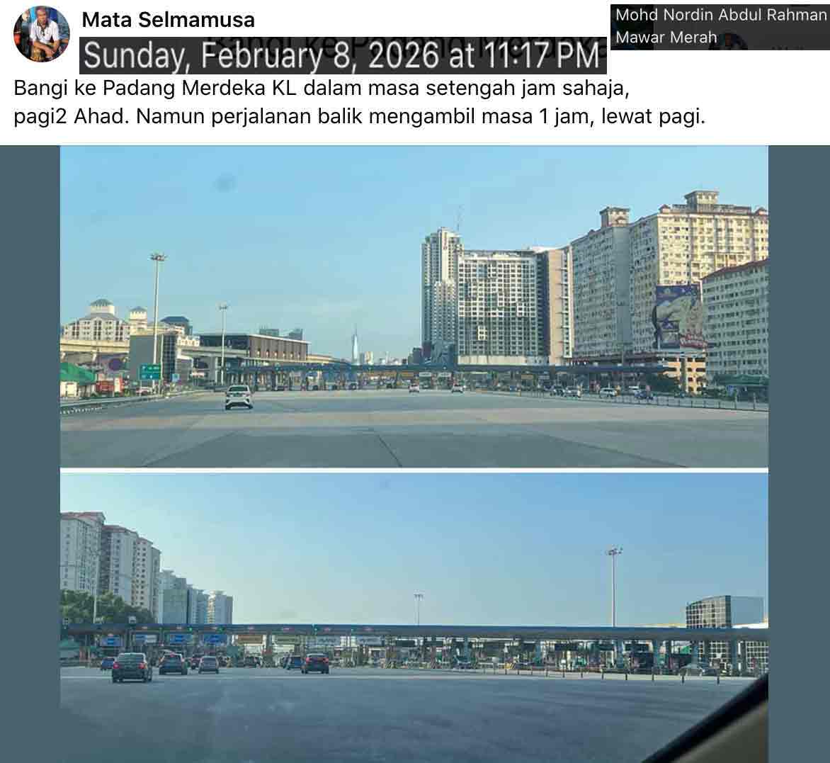 Jan 28 Wed 9 Shakban 1447H, DRVKUL after exactly fourteen days in TRG with twice DRV-JERTEH principally to P-Rimau. Rain and rising water were not of concern when we embarked. It was a bright day. Apparently so all to way to KL. Traffic was light too all the way, even in MRR2 except at a few notorious spots. The first break was in AJIL RR. This was the first time we took a break here. It was after all just a 15-min away from BJong toll. Refuelled in Prasing RR Shell. The second stop was in KARAK toll service for the washroom, and smayang. Home-ed in Sg Merab as anticipated, 1745. Noted the tanah kosong neighbouring had not changed since we left two weeks ago.