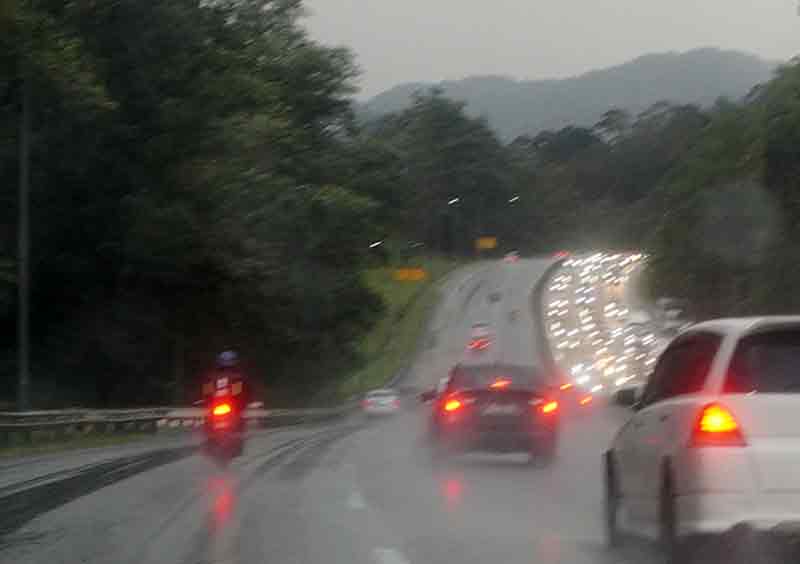Jan 7 Wed 17 Rejab 1447H, DRVKUL in TAV with NA. It was a drizzling day and windy, throughout the east coast, through to past Gambang. The first stop was in PRASING RR, rendv-ing with ASBIHANIS on their DRV-iKEROH-MARANG by PLUS-LPT1-LPT2, apparently to see HANIS's mother who was warded last Mon. Refuelling before resuming. Another break was in KARAK TOLL service for the washroom and smayang. Quite a congestion started after LIPUR LINTANG RR. Crawling all the way, climbing the Bukit Tinggi, through the terowong, and descend-ing. The epicentre was at the descending end of the terowong. An accident. It was dry in the western Titiwangsa. Clear traffic, MRR2 included. Home in Sg Merab as estimated ca1740.