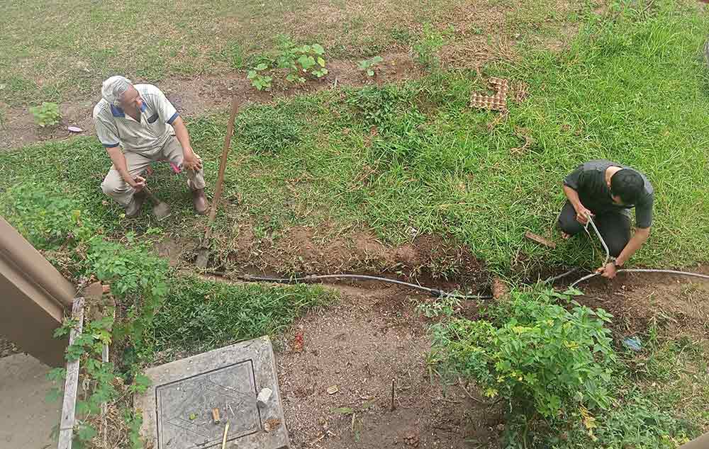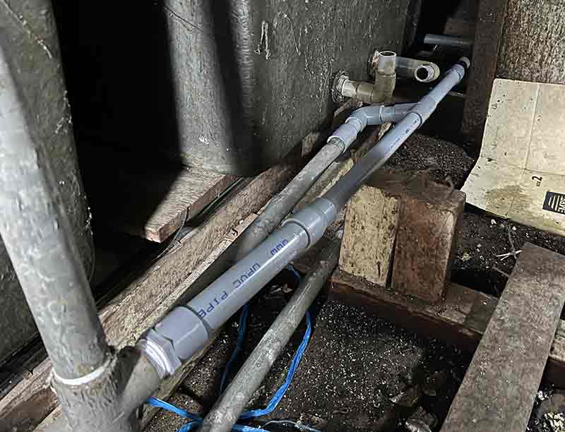 Feb 17-18 Tue-Wed 29-30 Shakban 1447H, dealt with the leaking water tank in the ceiling which supply the washroom of R-01, and of the guest WR-02, all were in g-floor. Fixing the cracked tank was not successful. The shortcoming was that it was not fully dry when araldite was applied. All planned, things were getting worse and worse every improvement, innovative steps were carried out, including with the help of Muzani. In the end, the final strategy was to recover the tank from the leaking by re-resin-ing the surface, which would take perhaps to after raya. The current effort was to make the WR-03 and 04 in u-floor useable. And accomplished by 1st Ramadan night with ASRI help. Draining the floor water was also achieved but gradually through the overflow line.