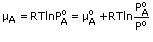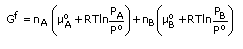 Selepas pencampuran, tekanan separa A menjadi PA dan tekanan separa B menjadi PB; tenaga bebas tersebut menjadi,