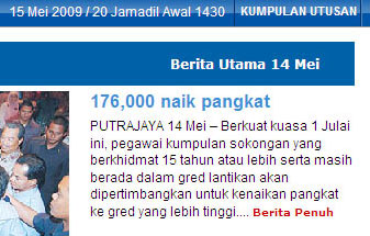 2009 May 14 Thu, on which I was not on leave, but in constant contact with the office in Terengganu, through to the weekend 2009 May 15 Fri were the asymptotic end of the marathon, with many efforts, including that of yesterday, to heal the traumatic May 13. This sweety consideration of promotion reminded me of how I was always 'unnetted', either one step behind or a leap infront. Since 1984 Dec 1, I was confined in DS54 (or the equivalent in those scheme), to my retirement 2007 Apr 19. That was more than 22 years. More than the magic 15 years. Unintelligent and uninstinctive enough to wiggle out of the confinement. I believed many hundreds thousands more were in such case, out of a close to a million so-called "human capital" - Modal Insan. No one cared about it.