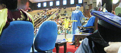 The drive in 4747 in the early morning into the compound was unexpectedly smooth. No congestion. Not as I had seen in the past. Congestion since the sun rise plus the 'hawkers' flower stalls along the road to the gate. Considering that today was the first session (out of ten), and the first convo for the (#3) new Chancellor, the quietness was rather strange.