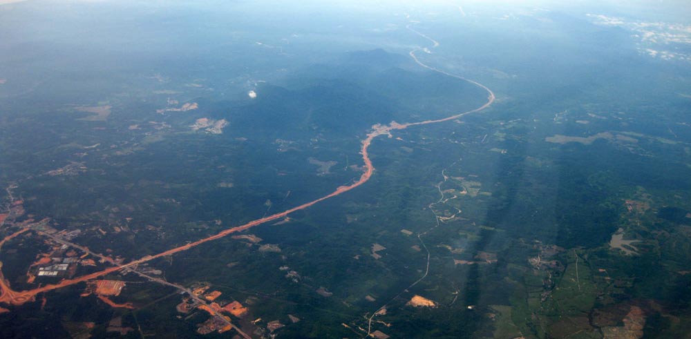 High above the clouds (Trg taxi drivers said: MAS jjalan atas pokok, Firefly ddalam pokok, perhaps Heli bbawah pokok) over the range of Titiwangsa. "... Assalamualaikum dan salam sejahtera, on behalf of Captain ... We will be landing as scheduled at four mins past eleven ..." which meant the plane was going to descend for landing. On 4A, usually I would not expect anything popping up, until the plane has landed and taxiing close enough to the terminal. Putrajaya would be on the other side. As well as KLCC. The south-ward of KLIA was nothing except oil palm.