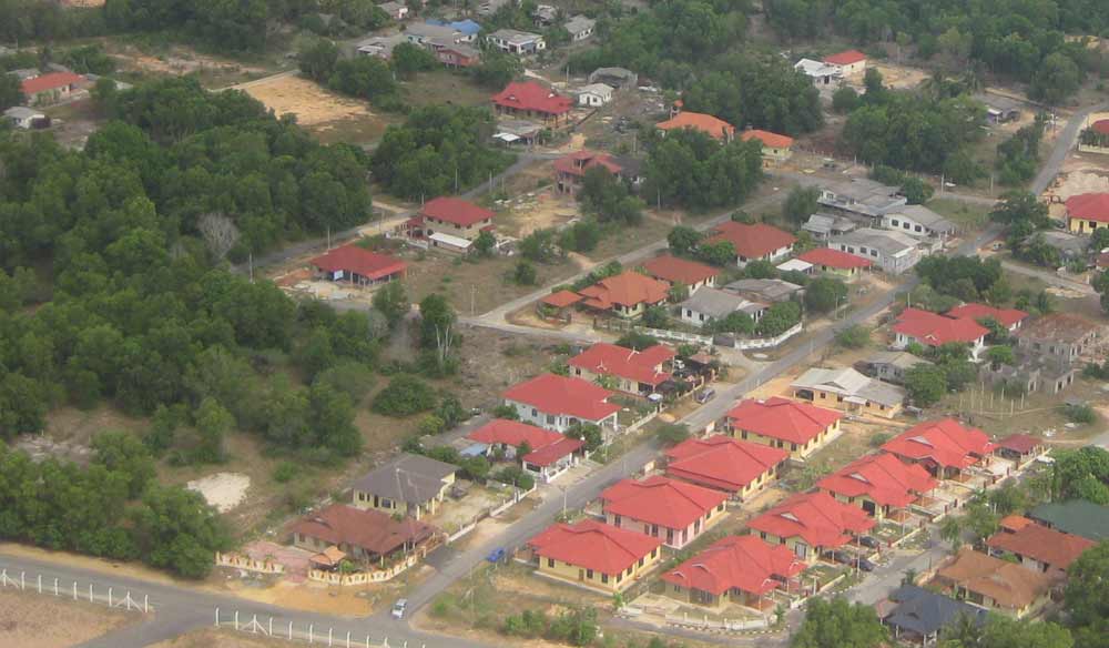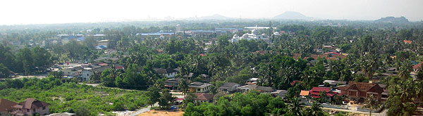 Nontheless, I had photoshop-ed it for later identification. Beginning with Bukit Besar on the background. Then the Nerus river, the river in which I washed, and played, and I grew until I left for the distance school beginning in 1964. Which once upon a time was a clear water river one could drink and "snorkel" the sand and the fish on the bed. I used to swim across this river before I set off. That must be when I was about ten or twelve.