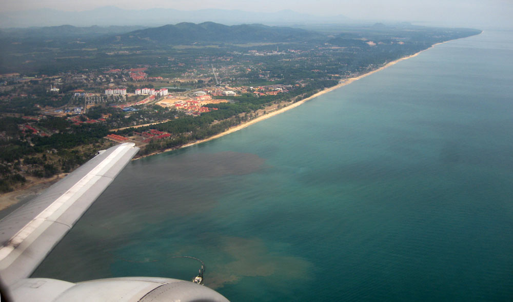 And the Kapas and the southward shoreline as the plane made a U-turn for KL-bound. The Kapas, the Ibai opening, and the bridge, and the windy river, Chendering fishing port, and the Marang river opening and wave breaker. And finally the Kelulut beach front.