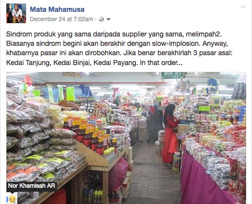 Oct 30 Sun, I had a chance to stroll Pasar Cabang Tiga, and Pasar Payang, the legendary market places of the 60's. The former, since moving to a new site is in a very pity state. By half day, it's dead. The latter was still a merry place, but it depended so much on occasional visitors. The fish section is in rigor mortis long time ago, the high price made it not worth visited.