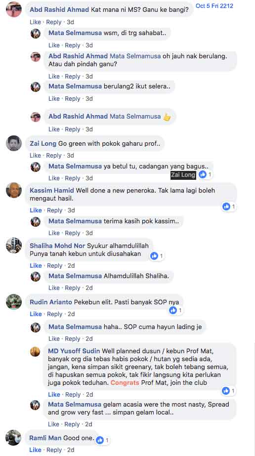 Oct 25 Thu, NA had a reminiscence in KT CT, a long time case, rather big. Moved to W-Tengah home. Followed up the pruning at the back of the house. The southern perimeter. It has assumed more or less the 'primary forest'.