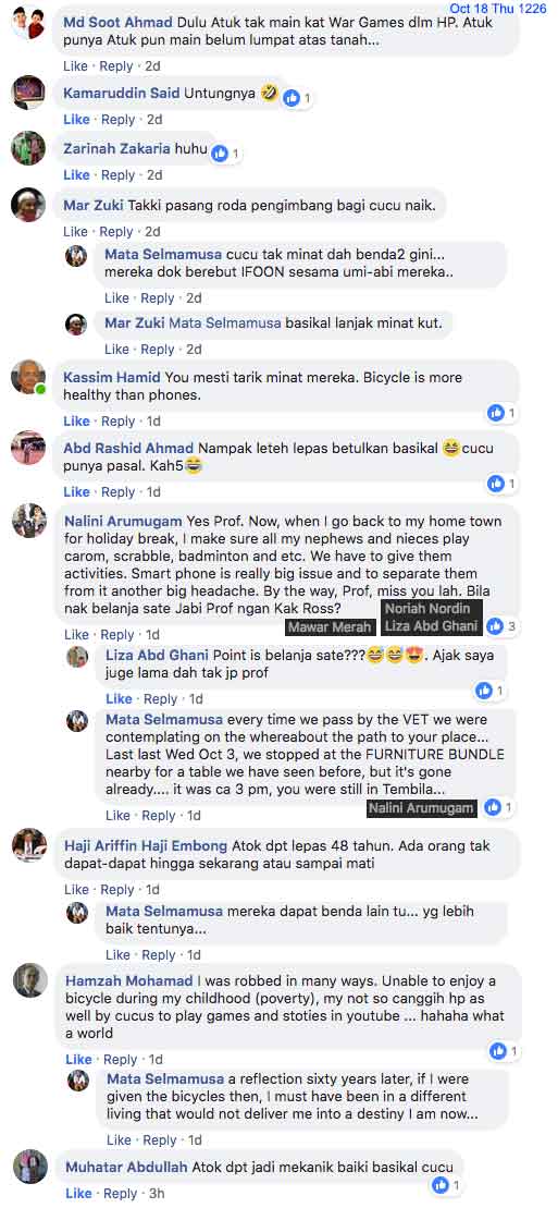 Dec 30 Sun 22 R-Akhir 1440H, DRVTGG with NA, for some pending engagement dates. ASRI opted to stay with CB in Sg Merab. The weather in last two days of 2018 in TRG was rather cloudy, some rain in the wee hr, non-rainy daytime. 2018 bye-ed us in W-Tengah. In 2018, Asri had not been to the school even a day. He has yet to decide what and where to continue his study. |