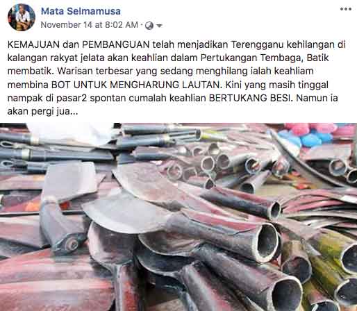 Nov 10 Sat 2 R-Awal 1440H, the returned DRVKUL. It was after a visit to MANIR BAZAAR, and after TAV was serviced by HONDA in Gong Badak. It was a sunny day. Manir bazaar was very merry with both petty sellers and buyers. Plenty of fish even though monsoon is already at the door step. But the KARAS perfume was no longer available, she said, very hard to get the KAYU.
