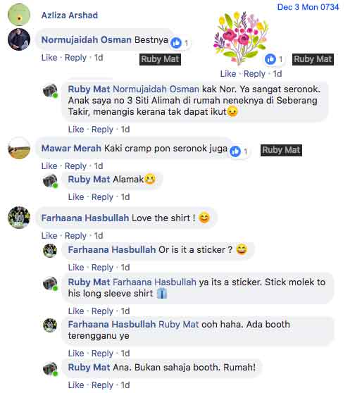 With Ruby in, life in Tok Jembal was merrier, her mother's blood is running in her. On her return DRVKUL Dec 9 Sun late afternoon, AIDAH-ALIMAH opted to continue staying with us, and in W-Tengah. ASRI was accompany-ing.