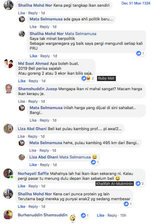 Discovering a new recipe for the barracuda Muzani brought home from his occasional sea-venture. NA did it. Haruan tasik and belitung, both were currently below 10rm/kg, had been tried successfully before.