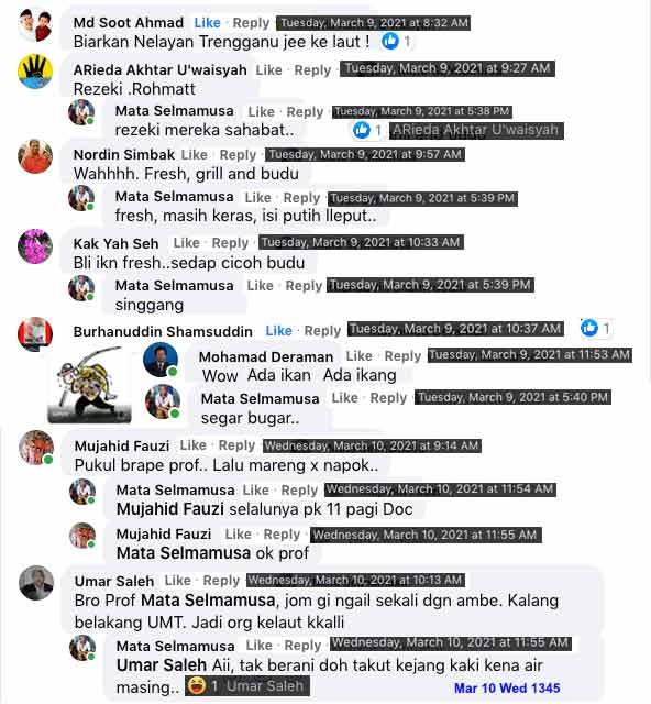 The FISH returned to TRG, in fiesta, after a halt for the past three months 2020 Nov to 2021 Jan during a torrential monsoon. But the price retained high even though the number of sellers multiplied said to be due to the pandemic as many lost the job for the lock-down. Small-size fish were still below 20rm/kg, but most of the big fish were 30+rm/kg, more expensive than the beef. Fish stalls were lined on every coastal street, the entrepreneurs were both pro and amateur.