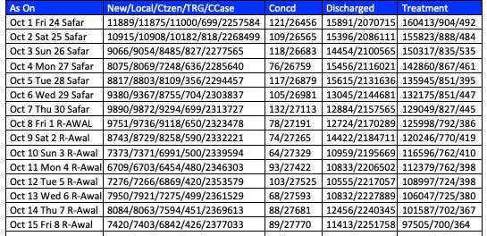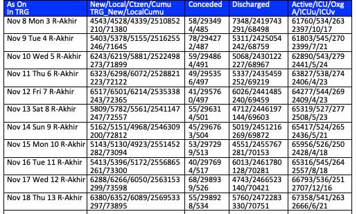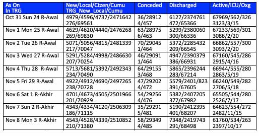 Ending Oct, the media reported, and fed with a full swing activities of the citizen in the eateries, the beach, the stream and the banks, the super-outlets, the travelling accs, as though the risk was over, even though the MOH figure showed just an infinitesimal daily better. The pandemic may wake up from its sleep state at any moment of a disturbance and arrogance. |