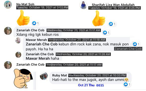 Oct 3 Sun, Ruby, Zidni, Muzani et al gathered for a kari-kepala-ikan, joining CB and Asri, and SB who was on home-weekend. Malini et al were in MERU, and ALYA et al in JB, otherwise every pcs of thirty-four of us were at home, which would be a rare chance of moment to archive. They kept accompany-ing while auditing the home perimeter.