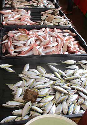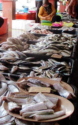 Fish-wise not so good this week. Landing on the beach of Kubang Badak and Tok Jembal was scarce. And the frequent wee-hr stormy rain had scared the fishermen from going out in the early morning. Most of the fish sold in the stalls along the beach road were that of "ikan kotot".