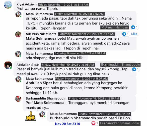 Oct 27 Wed, strolling KUALA BERANG, by LPT2, accompany-ing NA accomplishing a twisted task. The district of Hulu Terengganu was always a white zone during MCO-1, and MCO-2. But in MCO-3, it's colored, as red as other districts. While in town, dropped by at the two BAUNG. The TEPI-SUNGAI, and the TELAGA. Opened, all were on pax only. And the stalls in GAUNG appeared critically deprived of local produce. Even the lorry-produce were not attractive.