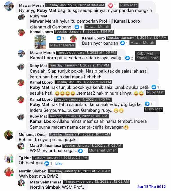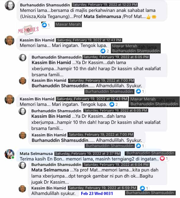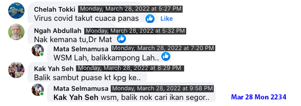 MAR 1 TUE 27 Rejab 1443H, Din Abg Ra et al were visiting us in W-Tengah while on their balik-kampong TRG from KL. Din's father, the late Abg Ra was my eldest sibling, my mother's #1son, and my father's #2son. Abg Ra, in his young days, took a great care of our younger siblings during their growing up years, especially during our hardest time in the late 60-s when I started being away in the distant school. My brother and I share a lot of family experiences and anecdotes that the younger siblings were too young, and did not know, just like my father and his elder siblings were, as narrated by my mother.