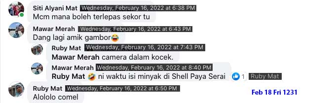 Feb 16 Wed 14 Rejab 1443H, the re-DRVTGG, 3-beranak with NA and ASRI, and in CB's BKD. TAV was in Sg Merab, to be fully examined when we return, before taking to a long distance drv again. Traffic, and weather were were on our side. In TRG it was cloudy. Signs of abundant water were that it had been raining quite a lot for the past several days. Many part the road sides were wet.