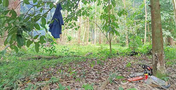 Mar 3 Thu 29 Rejab 1443H, DRV-JERTEH. First stop was P-RIMAU. Noted not so much menaces as before. A NYIOR, ex-Nordin, may survived. But the KELAT grew healthily with buds to propagate. NA made a bon fire, to mark the site for a durian. Next stop was T-BUGIS. Similarly un-menaced, and un-attended. A quick up-look against the sky, noted a durian tree had born BUDS OF FLOWER. It was zohor time. Decided just to prune the felled rambutan trees during last few visit. Popped-in Padang Luas before drv homeward, and as always arrived home just before isyak, in the rain from just before Jabi to Merang.