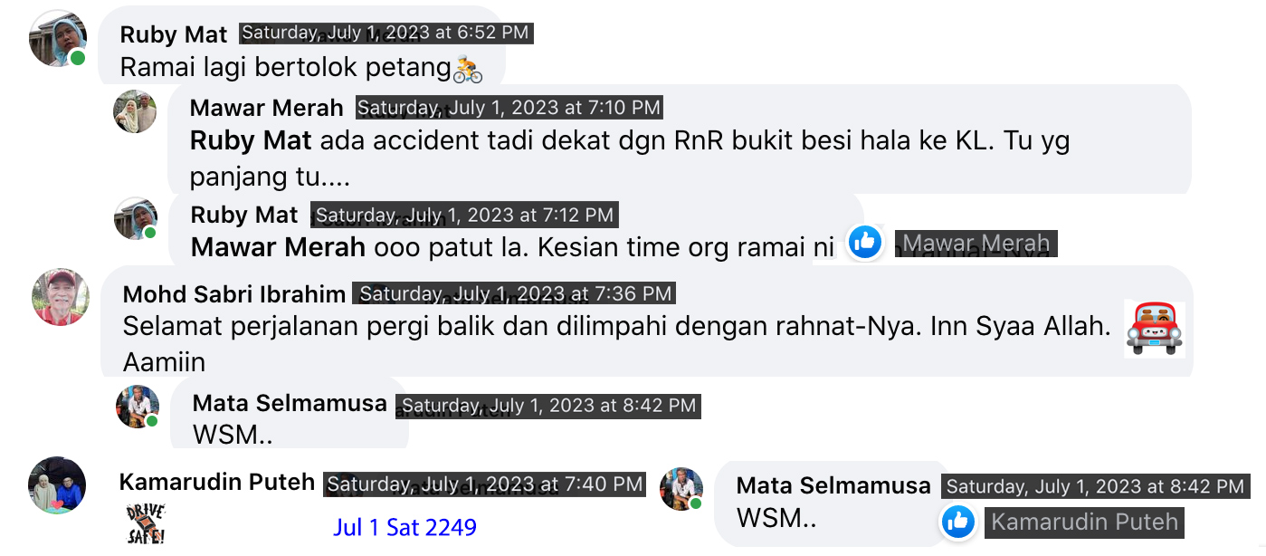 Jul 14 Fri 25 Z-Hijjah 1445H, DRVKUL, ber-2 in TAV. Started rather late after a visit to bazaar Maras, and pisang harvest in TJHOME. Initially set off by coasting the beach road. Singgah Rantau Abang for jumaat. Noted the FLAG had paraded along the road for the Aug 12 PRN-15 in 6 states. Joined LPT2 at Kuala Dungun toll. Weather-, and traffic-wise, were favourable. Refreshed in Temerloh. A short slow-moving in MRR2 from Flamingo to Petronas. Home-ed in Sg Merab right at sun-set.