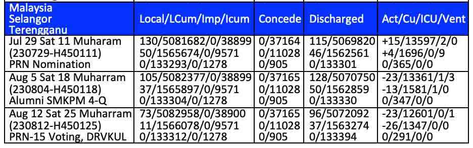 Aug 1-15 covid, the accompany-ing FOTOTEKS-es was MCO-F5-34, topping the previous COVID-MCO-es. The SOP of face-masking had died down. Noted the weekly data showed a very near zero death, and below 100 active. TRG had been rather green for weeks already.