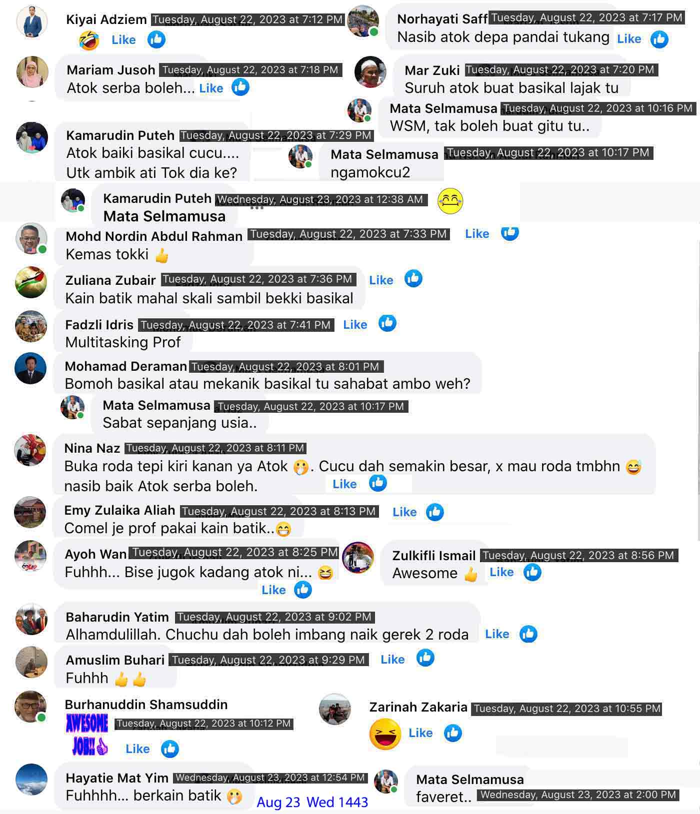 Jul 28 Fri 10 Muharram 1445H, a quick visit to MARAS FRIDAY BAZAAR. Then a morning in TJHOME clearing the storm-fallen trees last Wed night. And fixing the water leakage at the meter. Adik2 were very helpfully handy. Jul 31 Mon 13 Muharam 1445H, posted in conjunction with a short reunion with Prof Nordin Simbak, and Dr Abdullah, the former cum for the interest of SB orthopaedic matters.