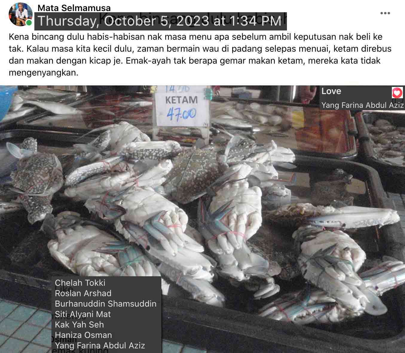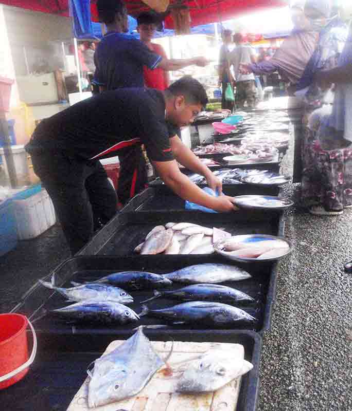 Wasting no time, the next day Oct 12 Thu 26 R-Awal 1445H, fishing in PKB. It was plenty of supplies, thus the price was perhaps the lowest of the season. The bapok kembong and selar, was only 17rm/kg which in Bangi may fetch 25rm/kg. Even ayer hitam was just 11rm/kg. Kisi, selayang, lolong, were in below 10rm/kg vic. Sutung appeared out of season already. Noted in PTJ, kisi on the stalls waiting for the customer.