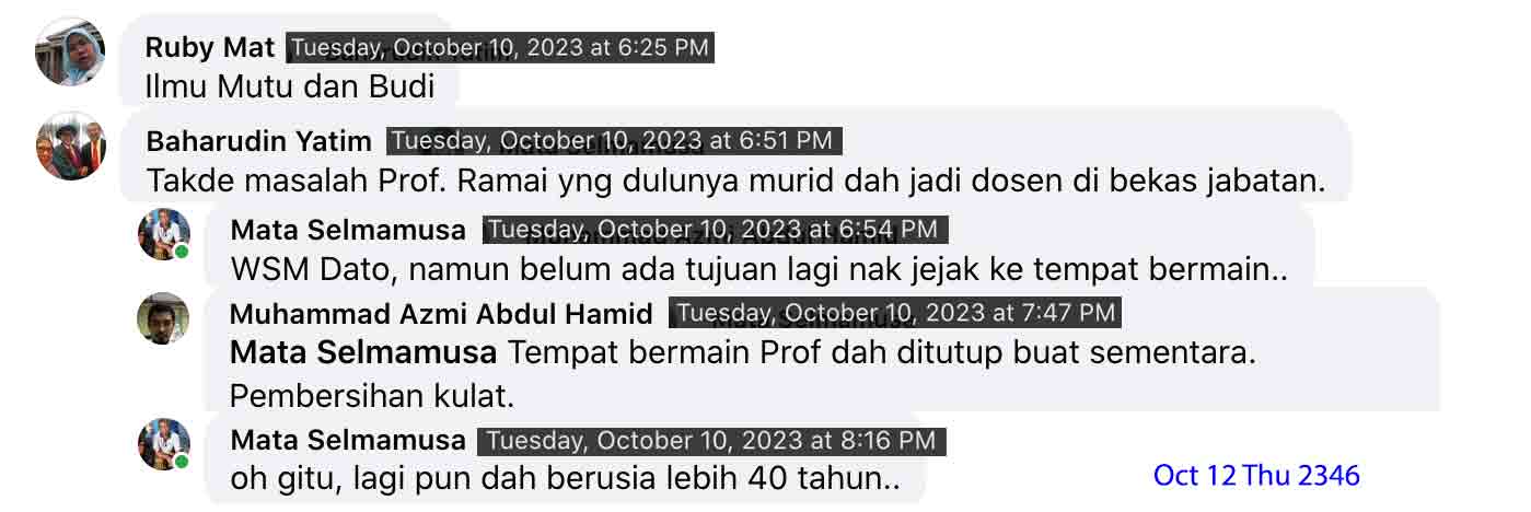 In wasap, it was informed that an ex-UDM colleague, Dr Kassim Hamid in PJ, passed on Dec 16 Sat 3 J-Akhir 1445H. He was the programme founder in 2007 of the Animal Production and Health in FPB UDM Kota, now FBIM UNISZA, in Tembila Besut. Dec 17 Sun 4 J-Akhir 1445H, accomplishing the third task. Attending Kamal's initiative RATIB for 4-beranak, Bak(d080321), Azizah(d100620), Chek(d220119) and Noriah(d231010) in Masjid Jamek Tok Jembal, after iser.