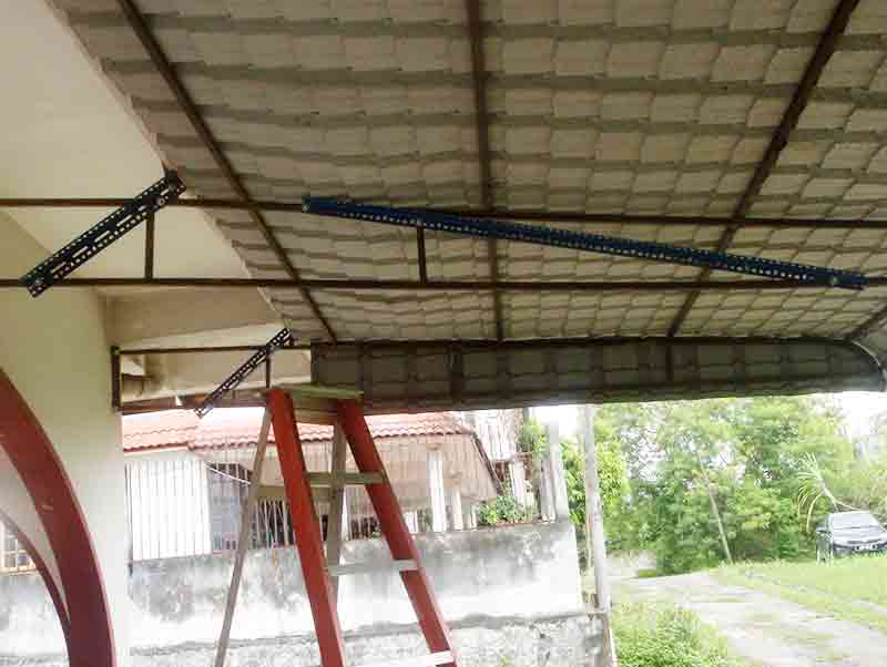 Oct 19 Thu 4 R-Akhir 1445H, visiting MALAKAT MALL to replenish the kitchen sundries. Noted on the arrival evening the awning had sagged, Asri noticed it the day before. Perhaps it was reaching twenty years. Fix-ed it bit by bit with CB, engineered the fixation from step by step as it progressed.