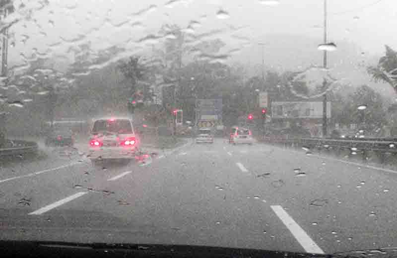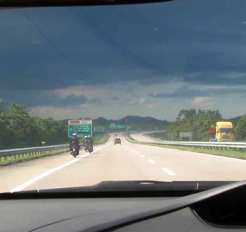Nov 15 Wed 1 J-AWAL 1445H, DRVTGG in TAV with NA, bye-ing CB, ASRI. Traffic was very clear. It was sunny in KL and LPT1, but rainy after Gambang exit. TRG was very cloudy. We were in skirmishes in Kemaman, Dungun. K Nerus was sunny when we arrived, after 6 h on the road with one refreshment in Temerloh RR.