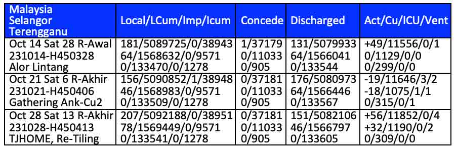 Nov 30 Thu 16 J-Awal 1445H, Covid data reappeared in the web, citing last dated Nov 26 Sun, displaying the data dated Nov 25 Sat, which appeared consistent with the last displayed data dated Nov 4 Sat. Missing two Sat-s. |