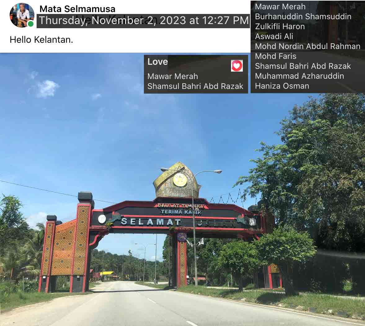 Nov 29 Wed 15 J-Awal 1445H, DRV-KETEREH, taking Abg Di, and NA for a mission. Amir accompany-ed, in Abg Di's Estima. It was a bright morning in TRG, but rainy in Kelantan. The mission was accomplished, but the results needed time. Near mid-night, visited MokLong who was returned in an ambulance, apparently from a two-nights warded in HSNZ.