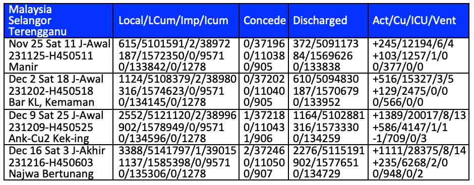 Dec 1-15 covid, the accompany-ing FOTOTEKS-es, was MCO-F5-42, topping the previous COVID-MCO-es. The new data re-appeared for the Nov 25 Sat, after missing two Sat-s. In the media, rakyat were warned, including by MOH of the increasing cases.