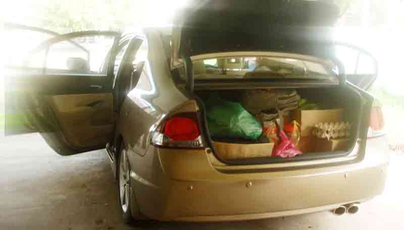 Oct 6 Fri 20 R-Awal 1445H, WFV was successfully restored to post-cooling-coil. It started with the broken front right tyre, happened a while ago but was not fixed immediately. A 2nd tyre was fitted. The fender was fixed with tit-bit and gam-campur mixed by CB. Both front mudflaps were fixed using scavenged screws. And spare tyre bay retaining screw were also gam-campor-ed. Nonetheless, the engine under cover was still unfitted. Still post-coolingcoil, limping with a-cond not switching-on, erratic wiper sudden-start, and dead clock. Judging by the amount of dismantling done to it, perhaps re-assembling the wiring was rather poorly finished off. SB returned for the home week end at the sun set.
