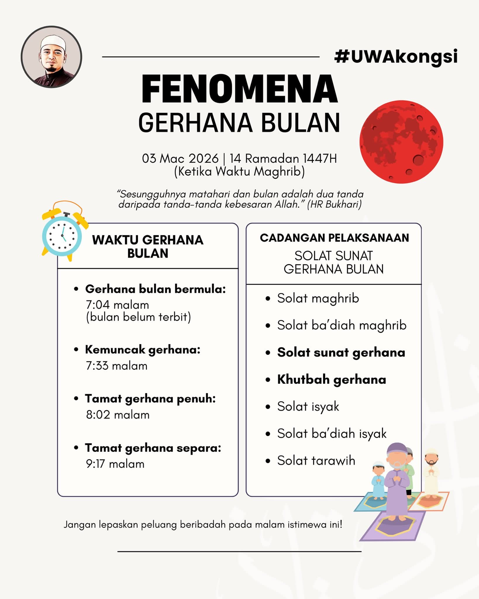 FOTOTEKSES-96 is for 2026 Mar 1-15, topping the PARALLEL, since the notorious covid has been. The first part of Ramadan in TRG was dry, sunny, and the sea was just breaazy and calm. Mar 3 Tue 13 Ramadan 1447H, Sejid Lipot hosted Iftar Perdana, but the major event was in conjunction with the sighting of full moon total eclipse during the iftar time. The event was with the cooperation of Jabat Mufti Trg. The newest part to the kariah was the solat sunat gerhana which the kariah very rarely came across. The eclipse is also known as Blood Moon because the shadowing earth was at sun set, which appears with rustic dispersion colour. The itinerary as described for the event, apart from gulai lembu, was hectic. Thus teraweh at home was an option.