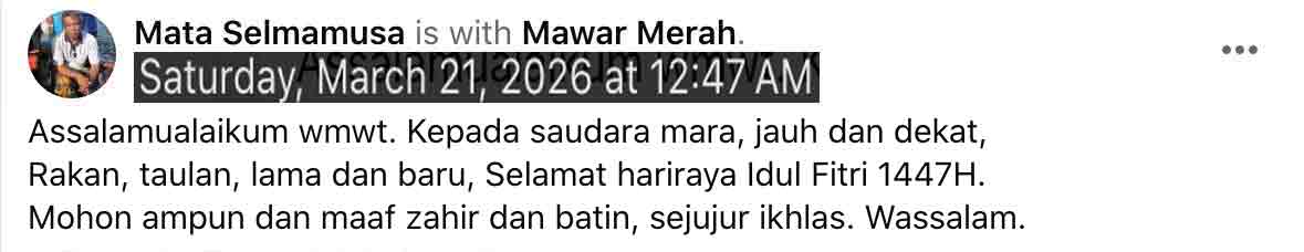 FOTOTEKSES-97 is for 2026 Mar 16-31, topping the PARALLEL, since the notorious covid has been. The second part of Ramadan was in Sg Merab. Shawal 2026 was Mar 21 Sat. Mar 18 Wed 28 Ramadan 1447H, another iftar sub-gathering with ank-cu2. Muzani's and Ruby's. Both to leave before 1-Shawal, the former to Trg and the latter to Penang.