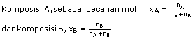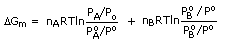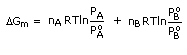 Selepas pencampuran, tekanan separa A menjadi PA dan tekanan separa B menjadi PB; tenaga bebas tersebut menjadi,