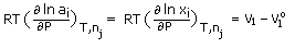 ISIPADU Bagi sistem unggul, mengikut Raoult: Dari segi isipadu, maka (¶m1/¶P)T,nj = V1 - isipadu separa molar komponen-1 Jadi, apabila kita membuat campuran, perubahan keupayaan kimia komponen-i adalah: ![]() Daripada takrif keupayaan kimia, µi = µio + RTlnai = µio + RTlnxi, maka, µi - µio = RTlnai = RTlnxi dan ¶(µi - µio) = RT¶lnai = RT¶lnxi Jadi, bagi pencampuran unggul, ![]() Oleh sebab Dengan perkataan, isipadu separa molar komponen-i dalam campuran unggul, adalah sama dengan isipadu molar komponen-i tulen. Apabila berlaku pencampuran unggul, isipadu jumlah campuran adalah hasil tambah isipadu masing-masing komponen.