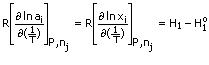 ENTALPI Daripada persamaan Gibbs-Helmholtz: serta operasi kalkulus standard, (-1/T2)dT = d(1/T), dan persamaan Raoult bagi keupayaan kimia, µi - µio = RTlnai = RTlnxi, maka, entalpi separa molar komponen-i. ![]() Oleh sebab sebutan ¶lnxi = 0, maka H1 - H1o = 0, iaitu H1 = H1o Dengan perkataan, entalpi separa molar komponen-i dalam larutan unggul adalah sama dengan entalpi separa molar tulennya, iaitu perubahan entalpi adalah sifar dalam pencampuran unggul.